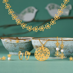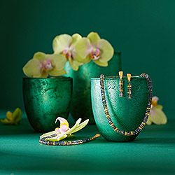 In unserer Manufaktur verarbeiten unsere Goldschmiede ausschließlich Perlen mit schönem Lüster, sowie Edelsteine und Korallen von besonderer Qualität. Diese werden in der Manufaktur einzeln von Hand ausgewählt. Viele Edelsteine wie auch Korallen bezaubern mit vielfältigen Einschlüssen und faszinierender Farbvielfalt und machen unsere Schmuckstücke so einzigartig. Die dabei vorhandenen Farbschwankungen zeichnen sie als besondere Naturprodukte aus. So entstehen harmonische, spannungsvolle Kreationen mit natürlichem Charme, die Ihre schöne Ausstrahlung perfekt unterstreichen. Zum Lexikon der Edelsteine