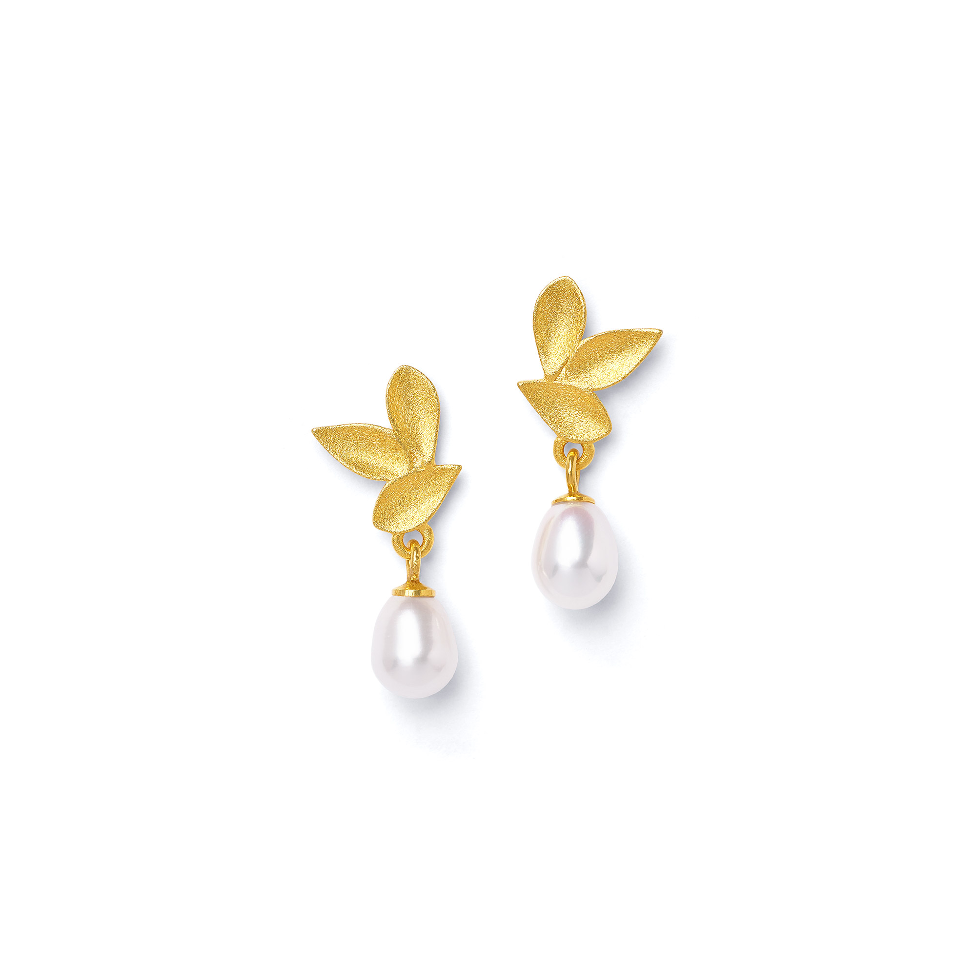 Modern yet wonderfully delicate and naturally shaped: The Dricia earrings are a stylish eye-catcher. The three concave leaves are beautifully rounded off by a drop-shaped freshwater pearl.