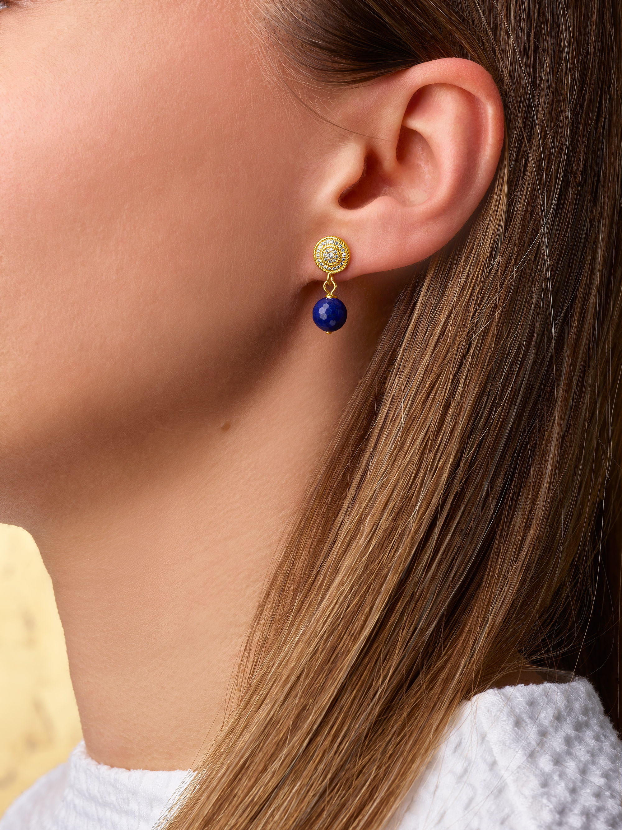 Der kostbare, ultramarinblaue Lapislazuli in der von BERND WOLF verarbeiteten exzellenten Qualität erinnert an einen leuchtenden Nachthimmel und harmoniert perfekt mit der 24-Karat-Goldplattierung der BERND Wolf Manufaktur. Weitere Infos zu den von BERND WOLF verwendeten Materialien im Lexikon der Edelsteine.