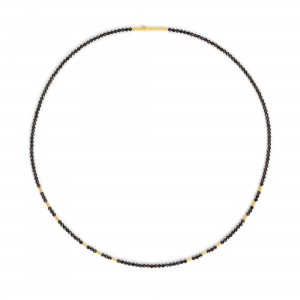 Mit seinem eleganten Funkeln eignet sich der tiefschwarze, geheimnisvolle Spinell perfekt zum Ausgehen und für ein festliches Outfit. Der von BERND WOLF verarbeitete schwarze Spinell stammt aus Indien. Weitere Infos zu den von BERND WOLF verwendeten Materialien im Lexikon der Edelsteine.
